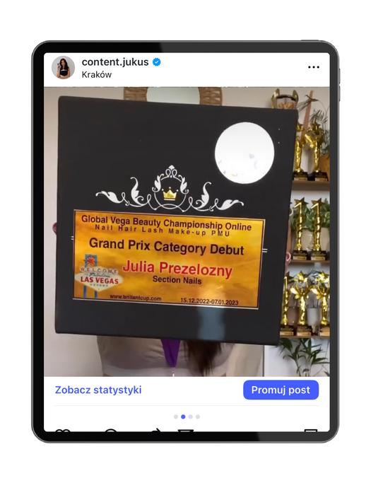 Zdobyłam kilka tytułów oraz koronę w mistrzostwach zdobień paznokci. Ukończyłam projekt instruktorski z wyróżnieniem, dzięki czemu zostałam certyfikowanym, niezależnym instruktorem. Jestem również autorką rozdziału o social mediach w książce branżowej oraz założycielką marki JUKUSSTORE.